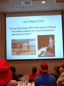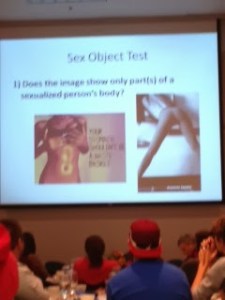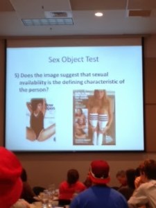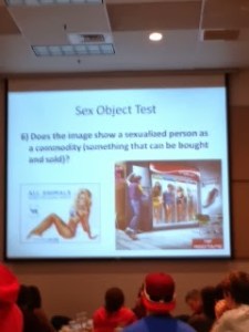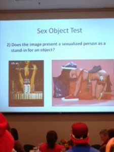One of the major points of her talk “The Sexy Lie” was the notion that young people have been so saturated by women’s bodies being used as sex objects that they cannot discern when it is actually happening.  So she (and some colleagues, I believe) developed The Sex Object Test.  Use this to critically examine what you are seeing on TV, in the movies, and particularly in advertising.
